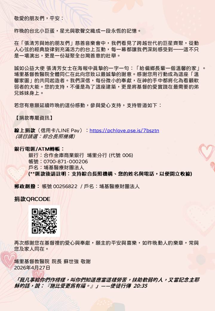 致親愛的朋友:謝謝您,讓昨晚的歌聲化作偏鄉最美的守護(張清芳與她的朋友們 慈善演唱會)